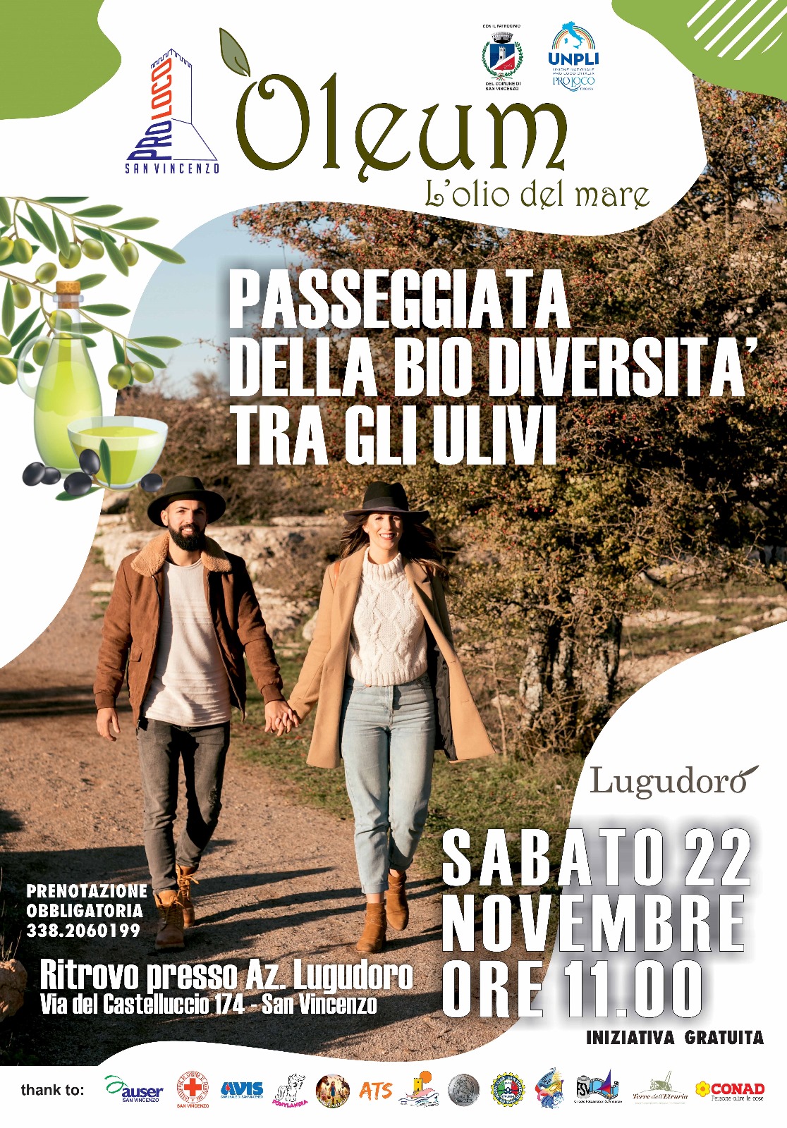 Inoltre da non perdere la Passeggiata della Bio Diversità tra gli Ulivi in programma sabato 22 alle ore 11:00, solo su prenotazione chiamando il numero 338 2060199. Clicca QUI per saperne di più.