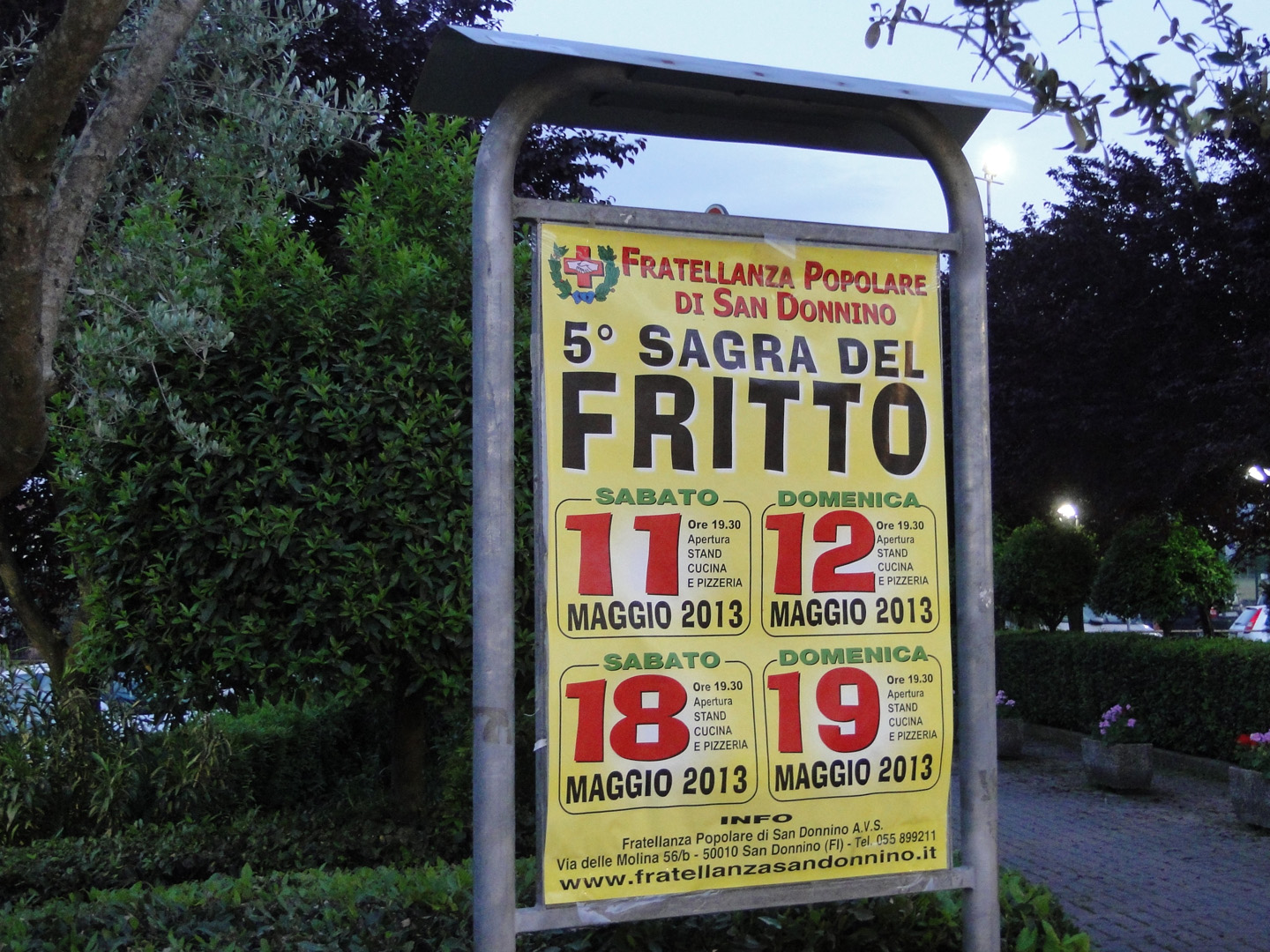 Appuntamento a San Donnino, nel comune di Campi Bisenzio (FI), nelle giornate di sabato 18 domenica 19 sabato 25 domenica 26 maggio occasione della 11ª edizione della Sagra del Fritto.