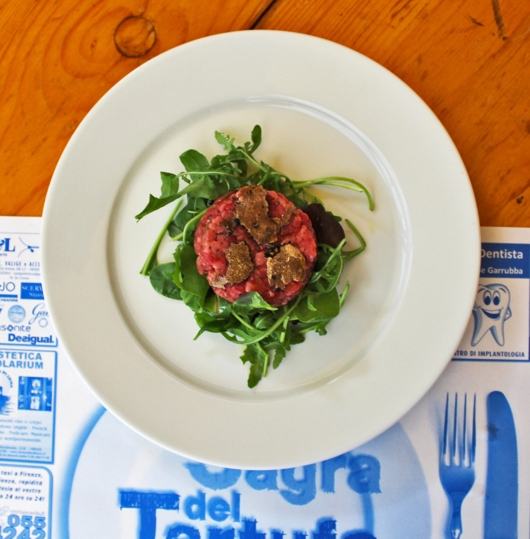 Nel menù della sagra spiccano numerose specialità a base di tartufo, tra le quali citiamo sformato di funghi con salsa al parmigiano e tartare di manzo come antipasti, primi come lasagne bianche, taglierini o tortelli, secondi come bistecca, hamburger, uova al forno e, per chi la preferisce, anche la pizza, tutti impreziositi dal tartufo. Nel menù sono stati recentemente introdotti anche nuovi piatti come la burratina con prosciutto crudo, la pappa al pomodoro e il baccalà al vapore con crema di fagioli. Ci saranno comunque anche altri piatti per chi vuol provare qualcosa di diverso. Per conoscere tutte le specialità in dettaglio, è possibile scaricare il menù della sagra in formato PDF.