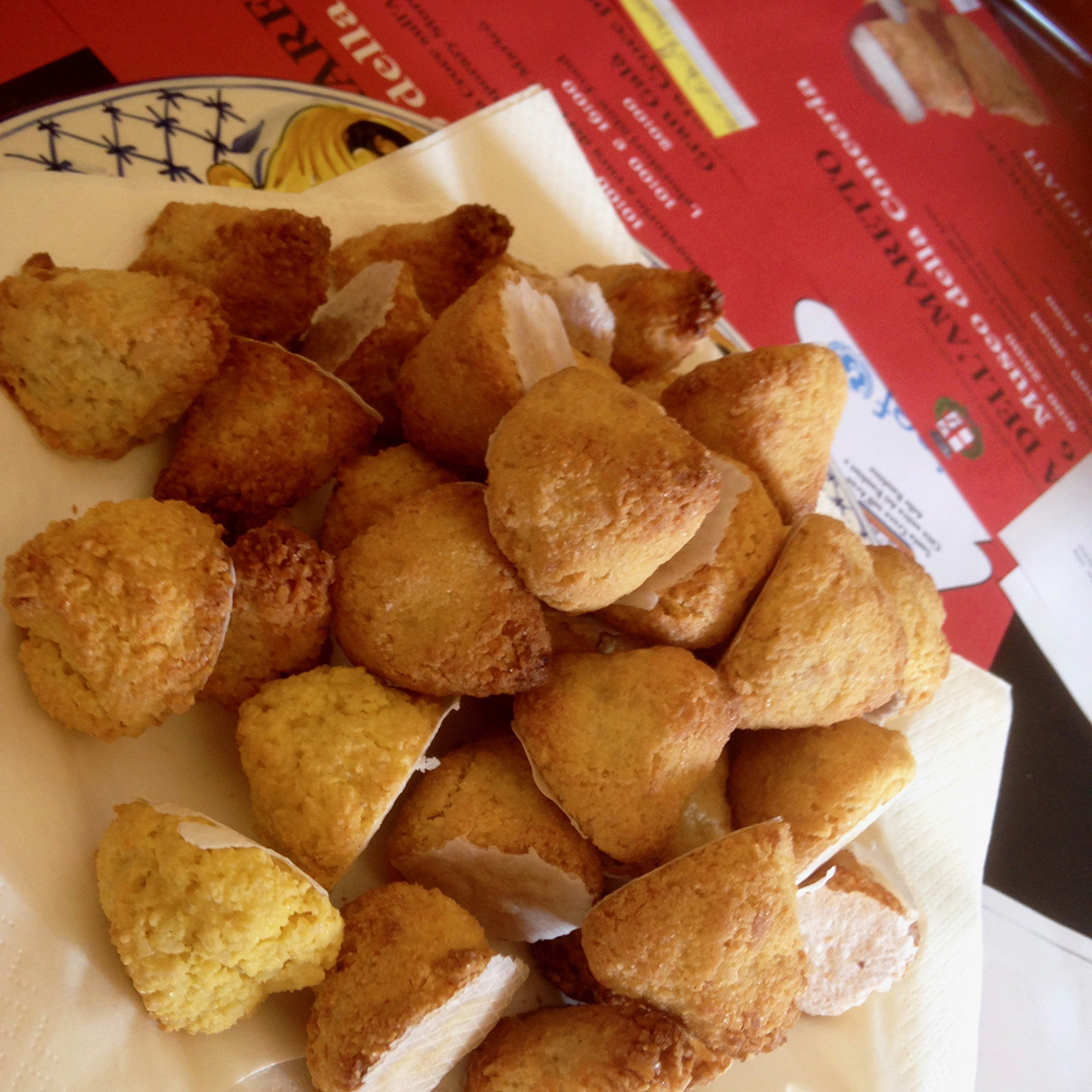 La storia dell'Amaretto inizia all'incirca 200 anni fa, all'interno del convento di clausura di Santa Cristiana. Le suore presero l'abitudine, in occasione del Natale, di donare ai benefattori alcuni dolcetti realizzati con le mandorle in parte offerte dai contadini locali e in parte ricevute dai parenti delle sorelle di origine siciliana. L'usanza di preparare questi dolci si estese poi anche ai fornai del paese e da lì divenne dolce tipico di Santa Croce sull'Arno.