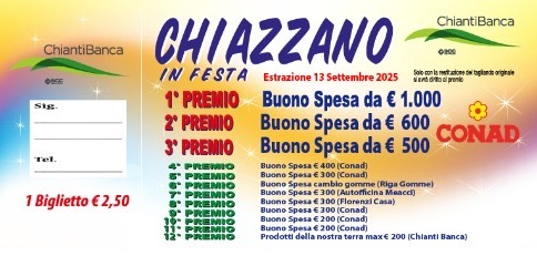 Dal 4 al 7 e dall'11 al 13 settembre 2025 a Chiazzano, un sobborgo di Pistoia, si svolgerà l'evento Chiazzano in Festa.